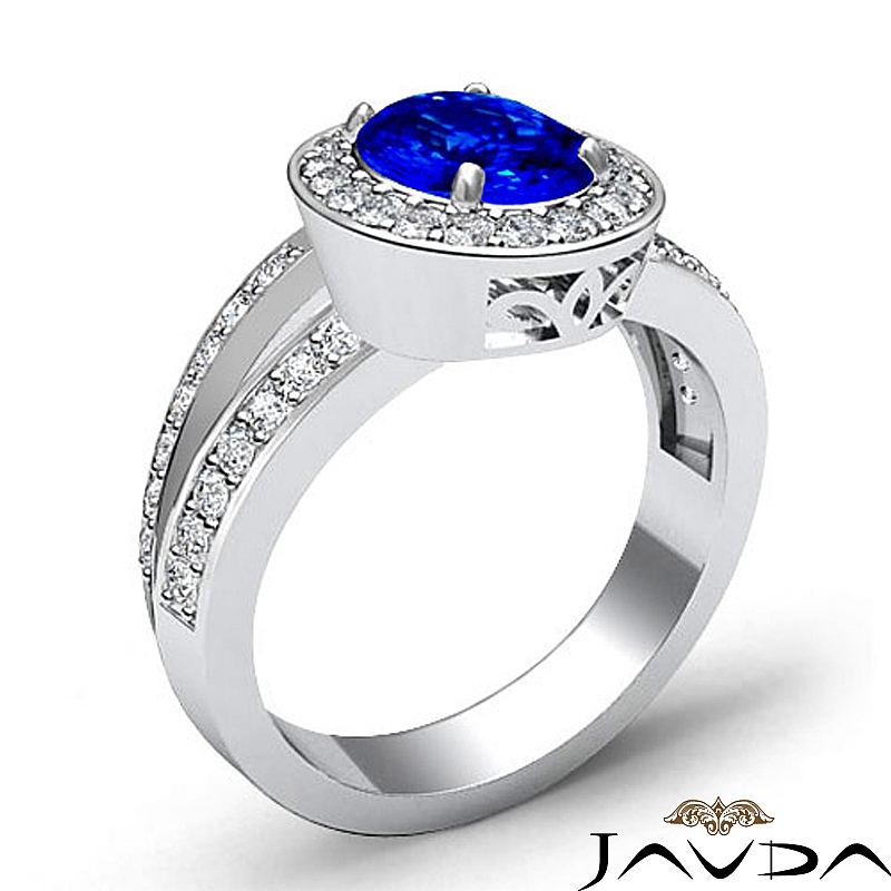 style Engagement Ring, center is Oval shape D Block Tanzanite Report by , Color & clarity, Made in 14k White Gold (1.55 ct. tw.)
