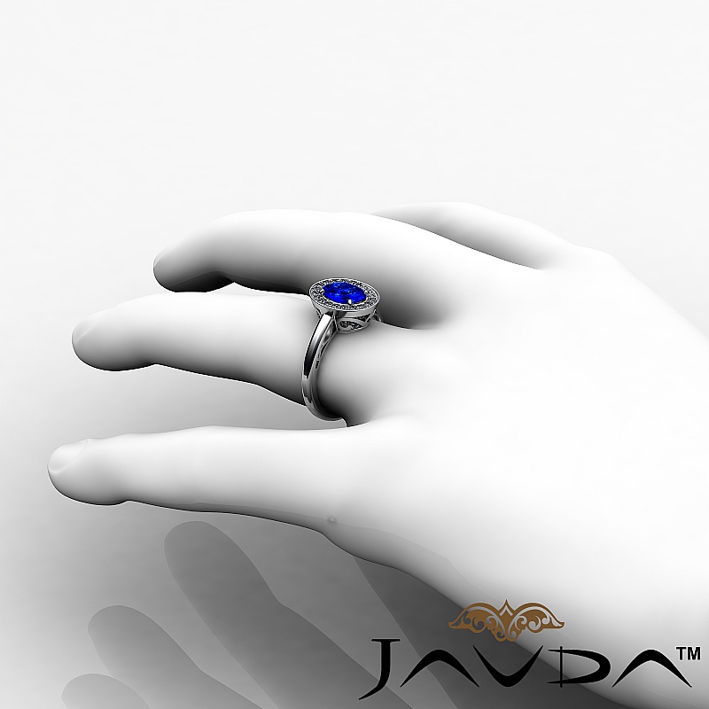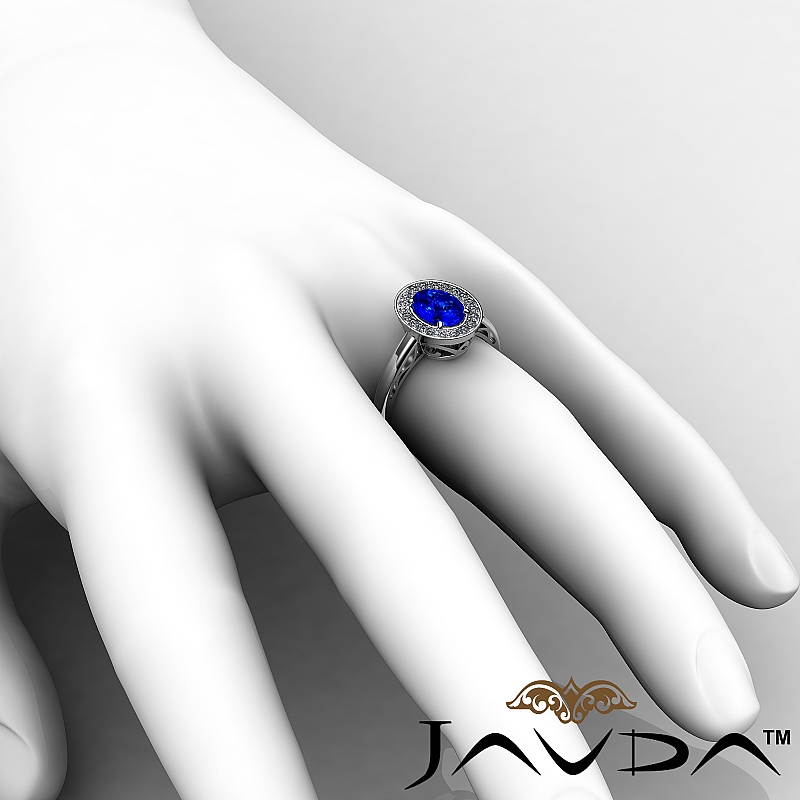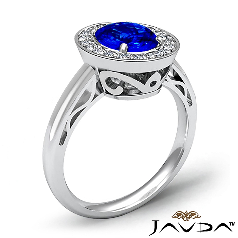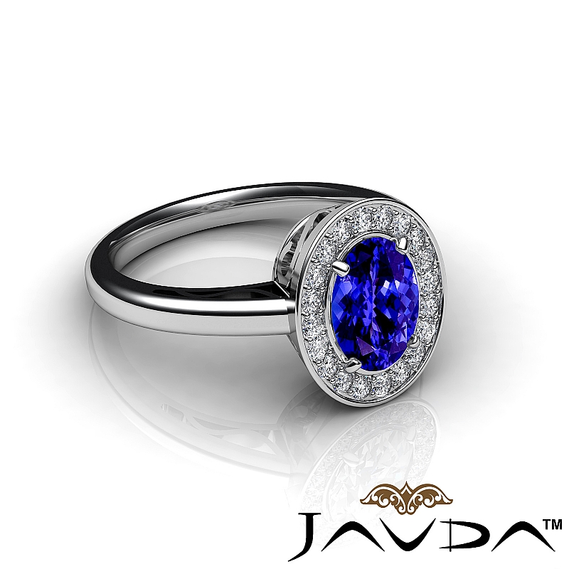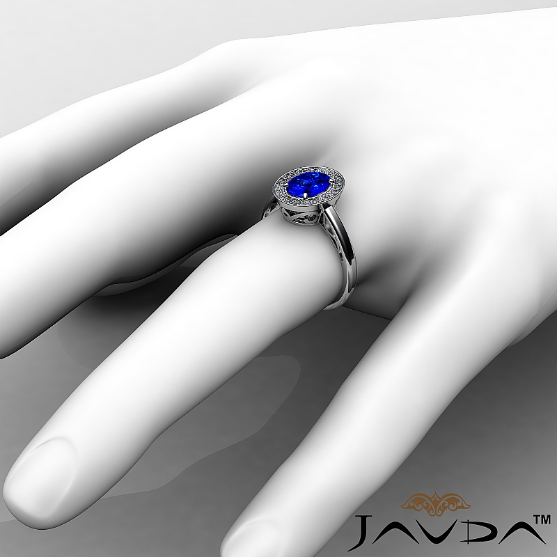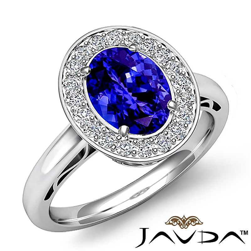 Halo Filigree Pave Setting style Engagement Ring, center is Oval shape D Block Tanzanite Report by , Color & clarity, Made in 14k White Gold (1.36 ct. tw.)