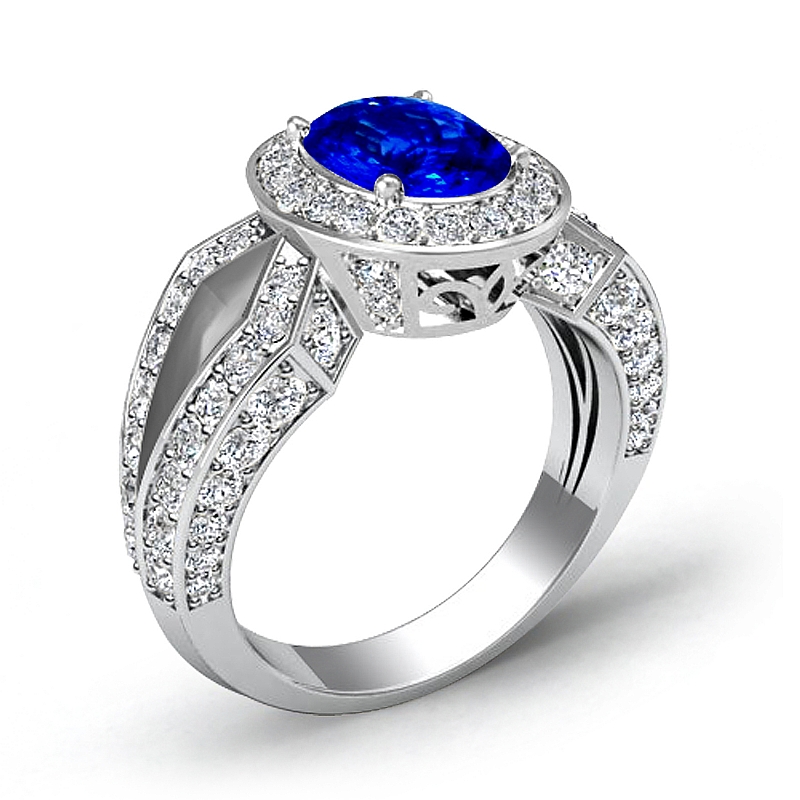 Vintage Halo Pave Filigree style Engagement Ring, center is Oval shape D Block Tanzanite Report by , Color & clarity, Made in 14k White Gold (2.38 ct. tw.)