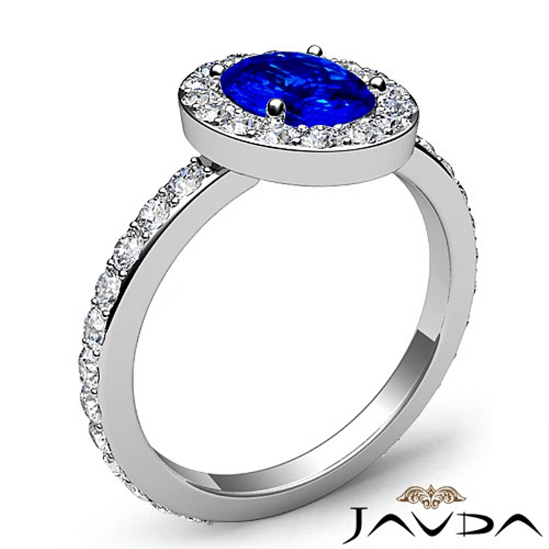 Circa Halo Sidestone Pave Set style Engagement Ring, center is Oval shape D Block Tanzanite Report by , Color & clarity, Made in 14k White Gold (1.85 ct. tw.)
