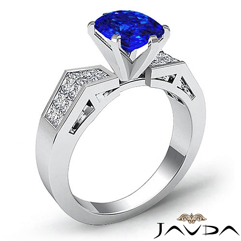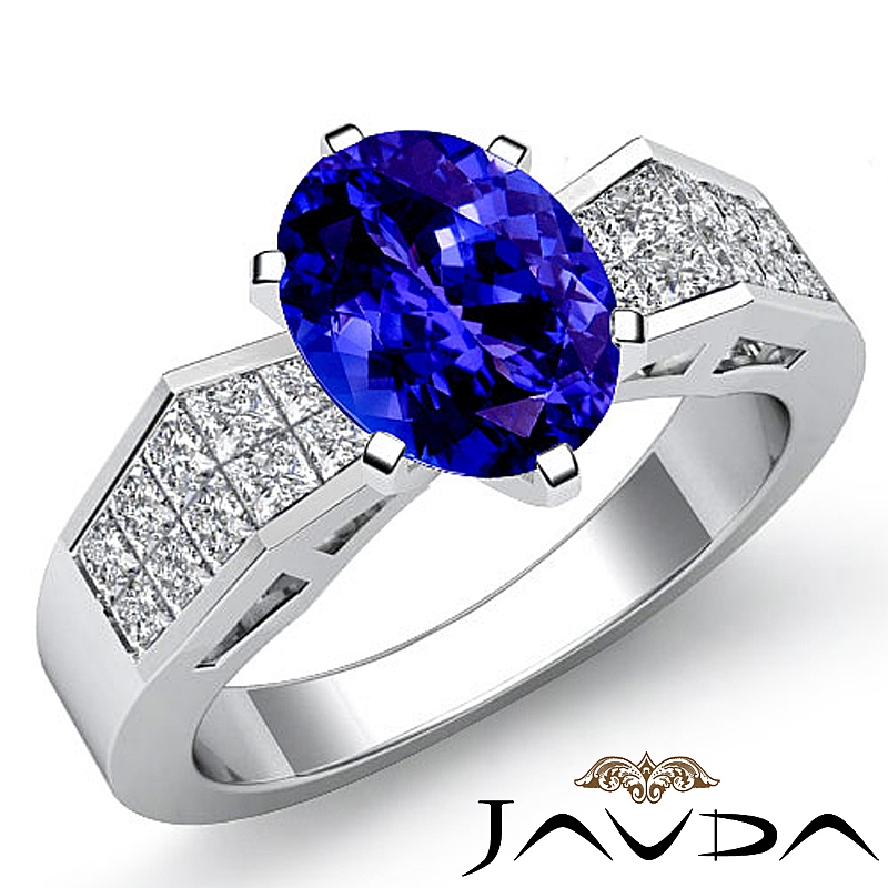 Invisible Classic Side Stone style Engagement Ring, center is Oval shape D Block Tanzanite Report by , Color & clarity, Made in 14k White Gold (1.68 ct. tw.)