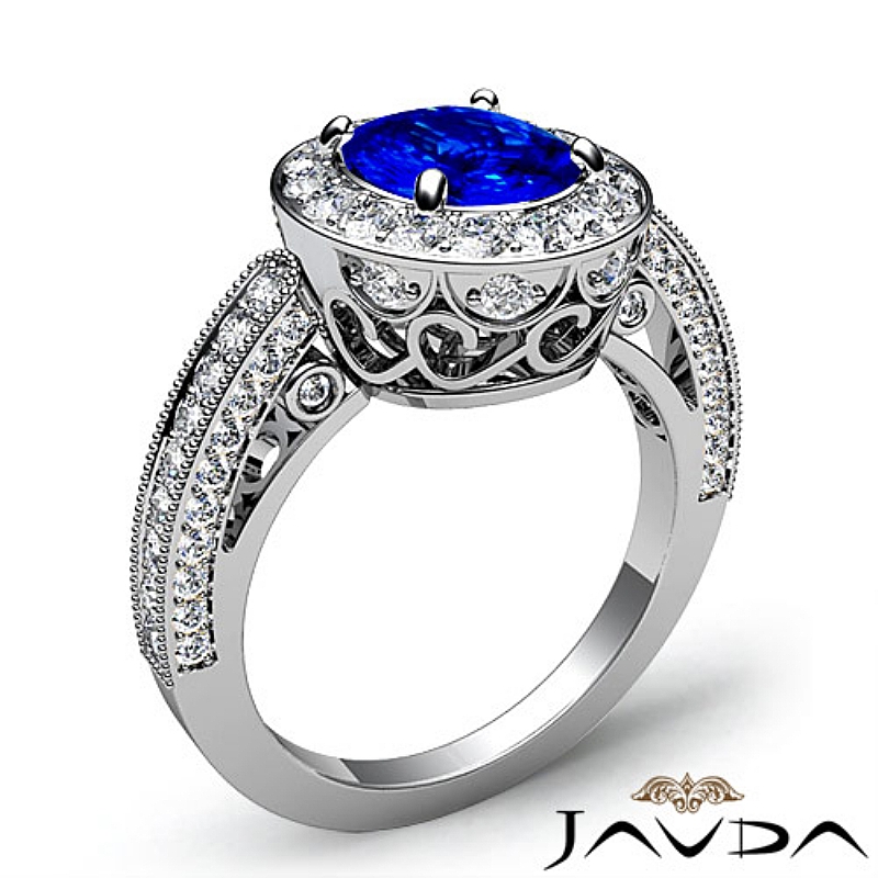 Royal Design Shank Halo style Engagement Ring, center is Oval shape D Block Tanzanite Report by , Color & clarity, Made in 14k White Gold (2 ct. tw.)