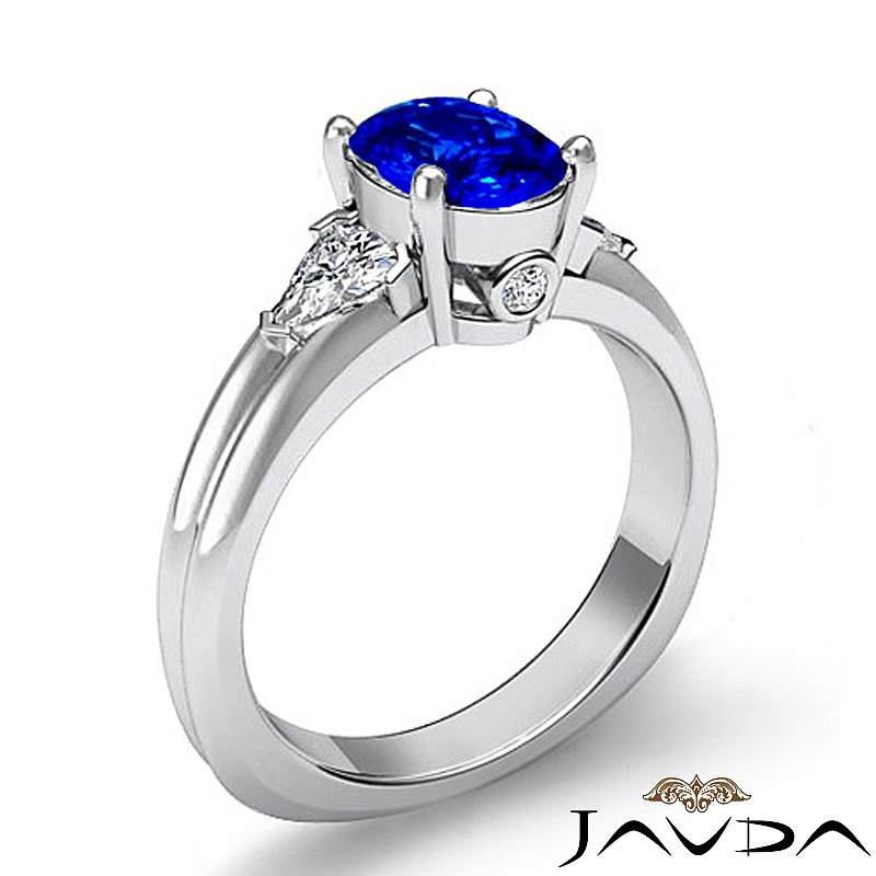 Trillion Accent 3 Stone style Engagement Ring, center is Oval shape D Block Tanzanite Report by , Color & clarity, Made in 14k White Gold (1.58 ct. tw.)