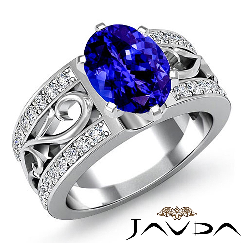 style Engagement Ring, center is Oval shape D Block Tanzanite Report by , Color & clarity, Made in 14k White Gold (1.55 ct. tw.)