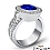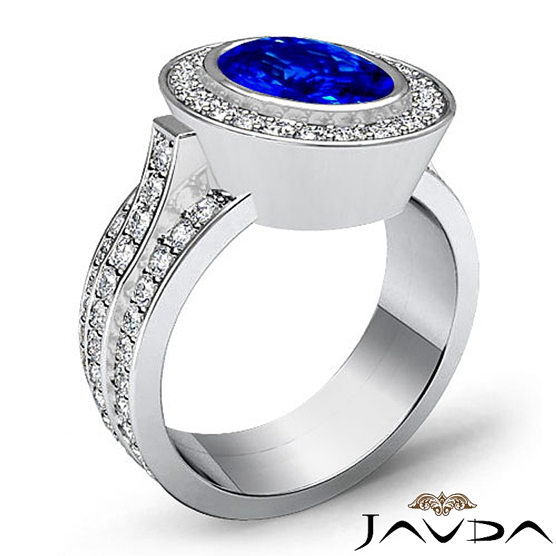 3 Row Shank Bezel Halo style Engagement Ring, center is Oval shape D Block Tanzanite Report by , Color & clarity, Made in 14k White Gold (2.65 ct. tw.)