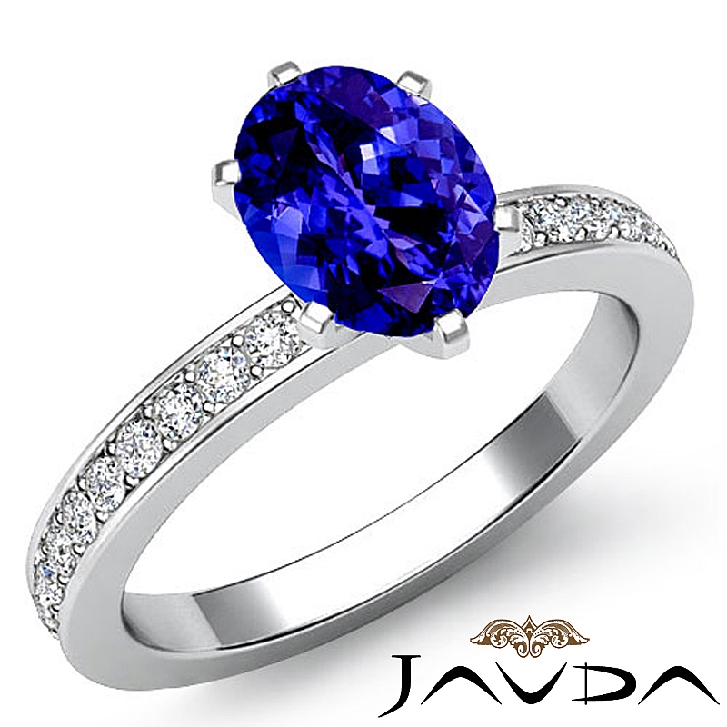 style Engagement Ring, center is Oval shape D Block Tanzanite Report by , Color & clarity, Made in 14k White Gold (1.5 ct. tw.)