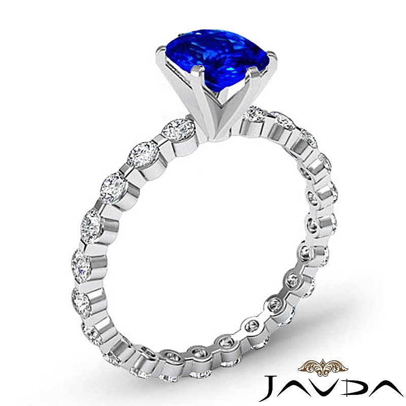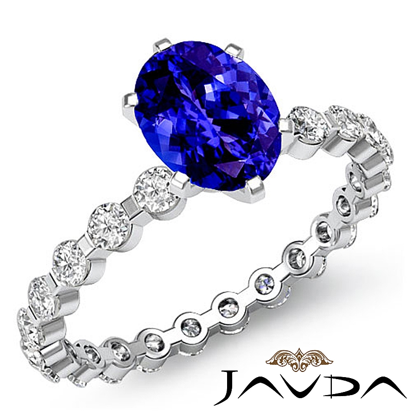 Bar Setting Eternity style Engagement Ring, center is Oval shape D Block Tanzanite Report by , Color & clarity, Made in 14k White Gold (1.4 ct. tw.)
