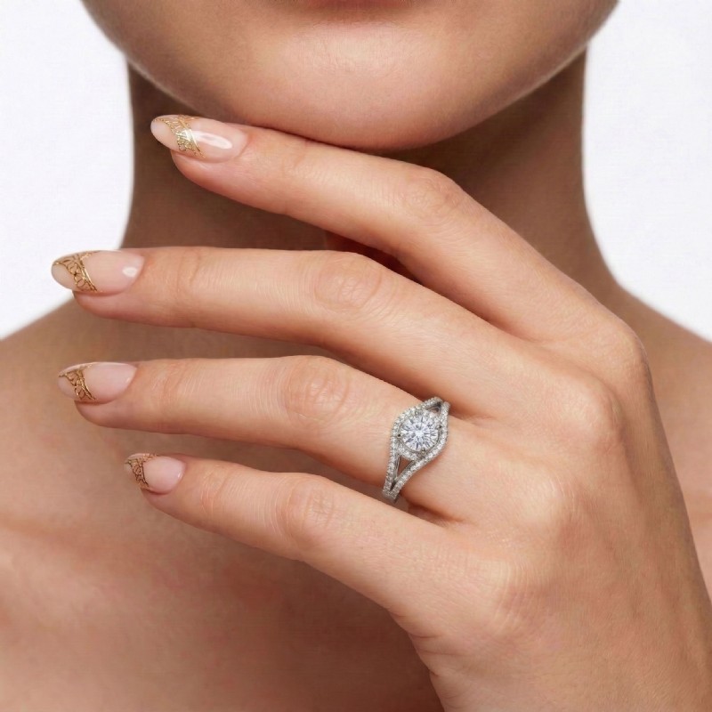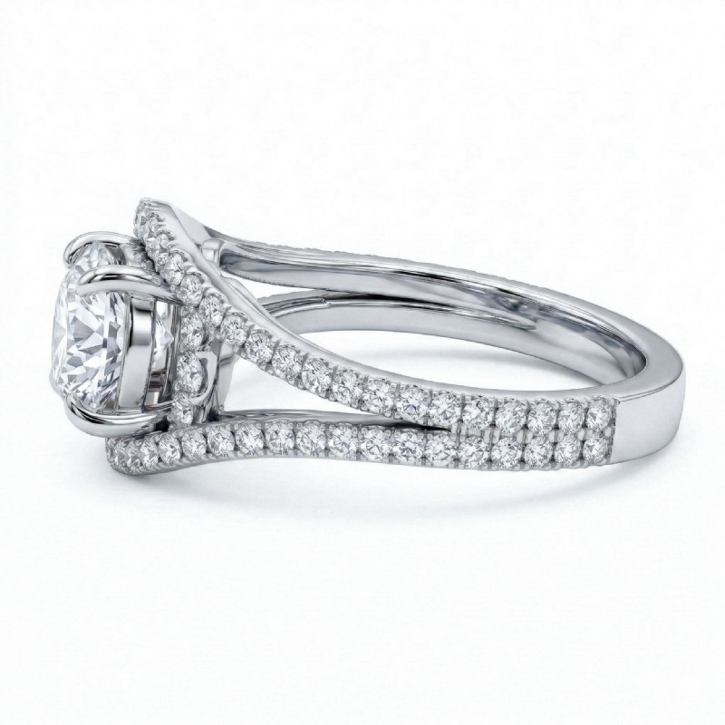 style Engagement Ring, center is Round shape Diamond Report by GIA, F Color & SI1 clarity, Made in 14k White Gold (1.65 ct. tw.)
