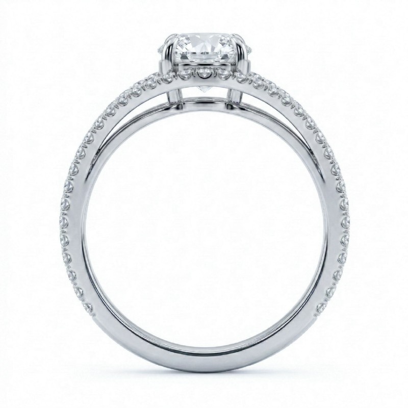 U Shared Prong Diamond Engagement Ring Round Semi Mount 14k White Gold 0.65Ct.