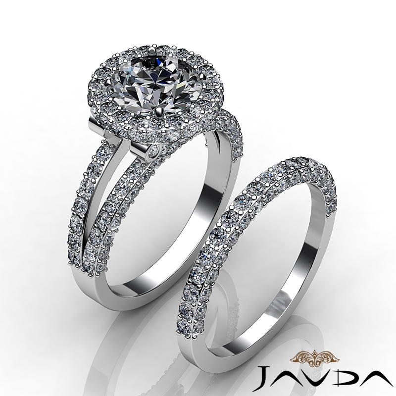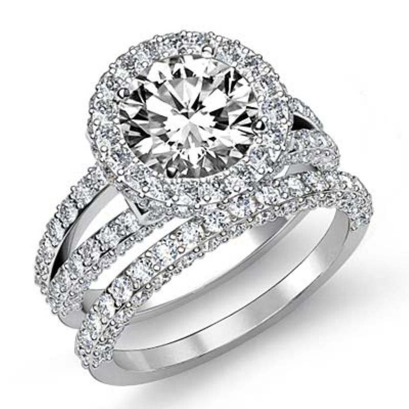 Halo Split Shank Bridal Set style Engagement Ring, center is Round shape Diamond Report by GIA, I Color & SI1 clarity, Made in 14k White Gold (3.28 ct. tw.)