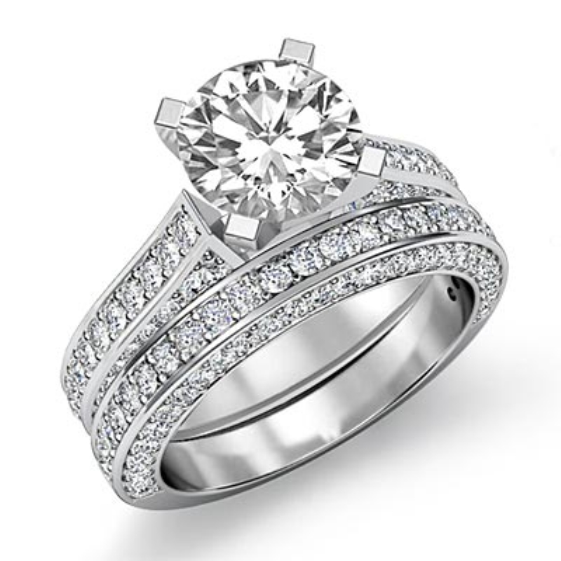 Pave Wedding Bridal Set style Engagement Ring, center is Round shape Diamond Report by GIA, I Color & SI1 clarity, Made in 14k White Gold (3.2 ct. tw.)