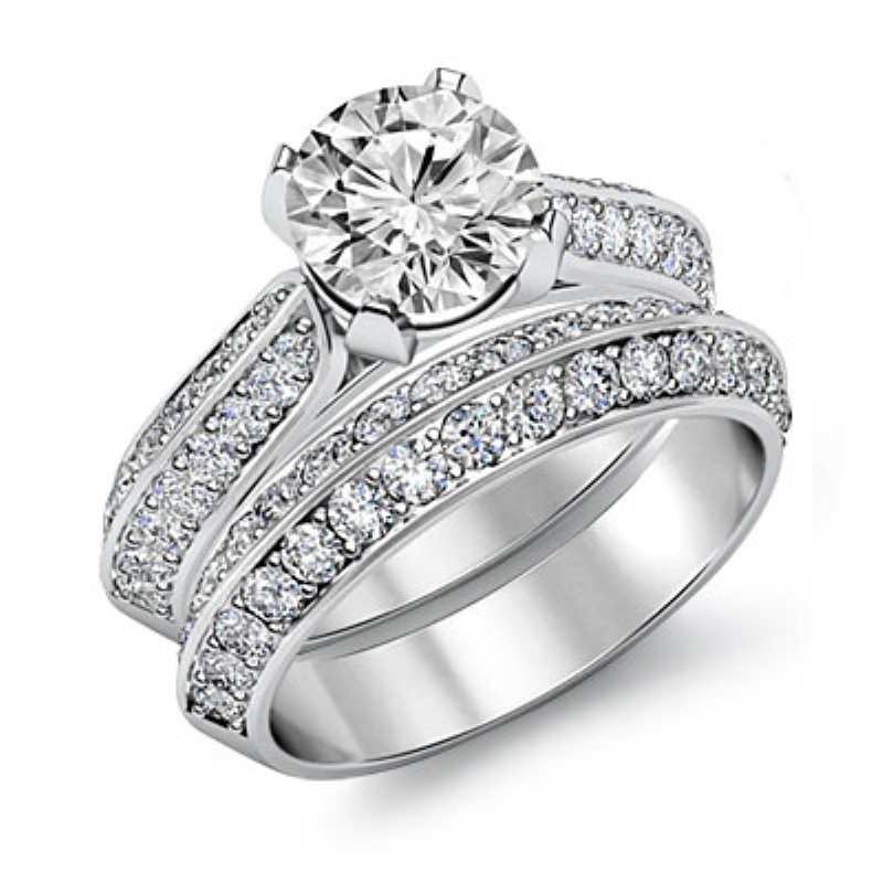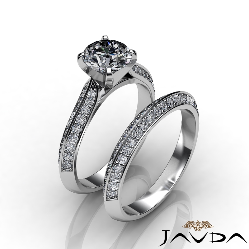 2 Row Shank Pave Bridal Set style Engagement Ring, center is Round shape Diamond Report by GIA, I Color & SI1 clarity, Made in 14k White Gold (2 ct. tw.)