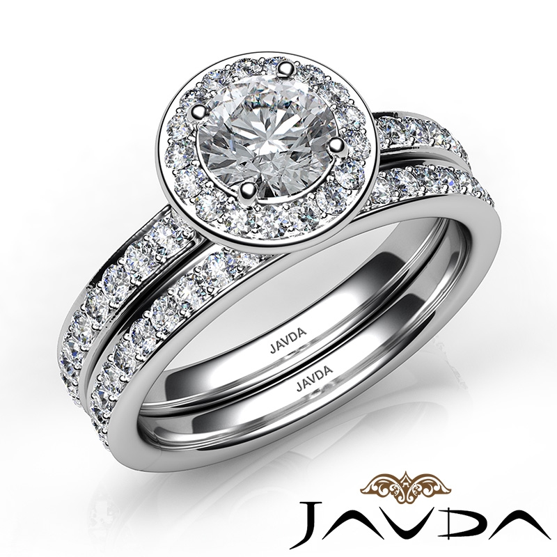 Halo Micropave Bridal Set style Engagement Ring, center is Round shape Diamond Report by GIA, E Color & VVS1 clarity, Made in 14k White Gold (1.45 ct. tw.)