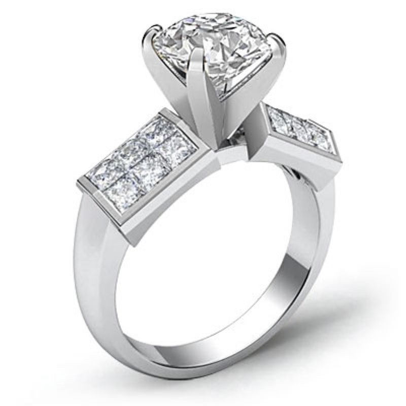1.06Ct Princess Diamond Engagement Women's Ring Invisible Setting 14k White Gold.