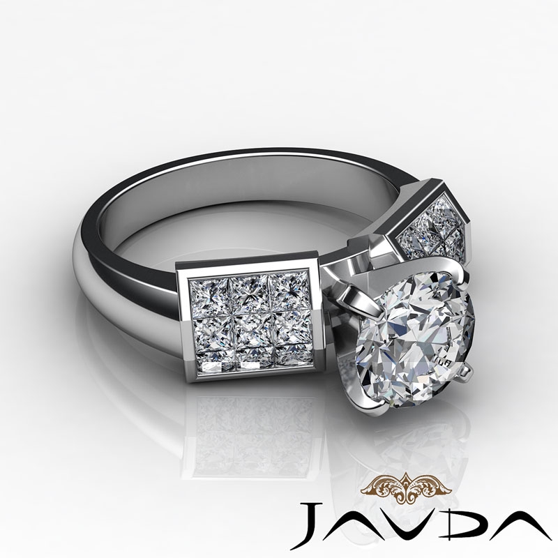 Invisible 4 Prong Setting style Engagement Ring, center is Round shape Diamond Report by GIA, E Color & VS2 clarity, Made in 14k White Gold (1.56 ct. tw.)