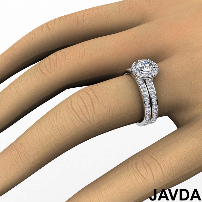 Diamond Engagement Halo Pave Setting Round Semi Mount Ring 14k White Gold 0.45Ct.
