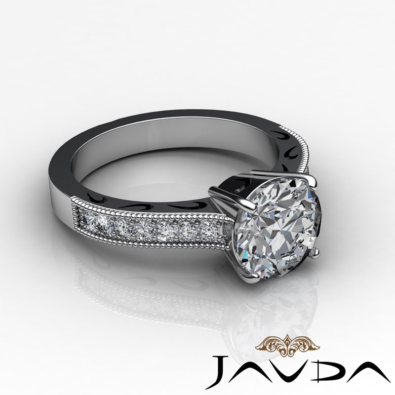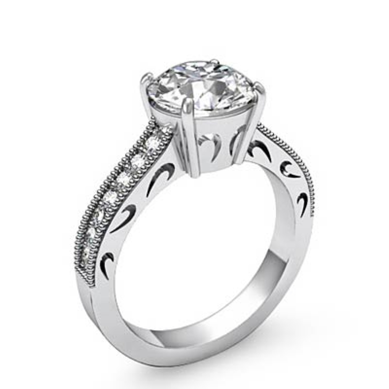 0.25Ct Round Diamond Vintage Engagement Ring 14k White Gold Semi Mount.