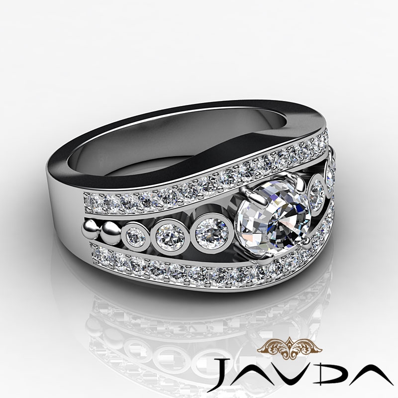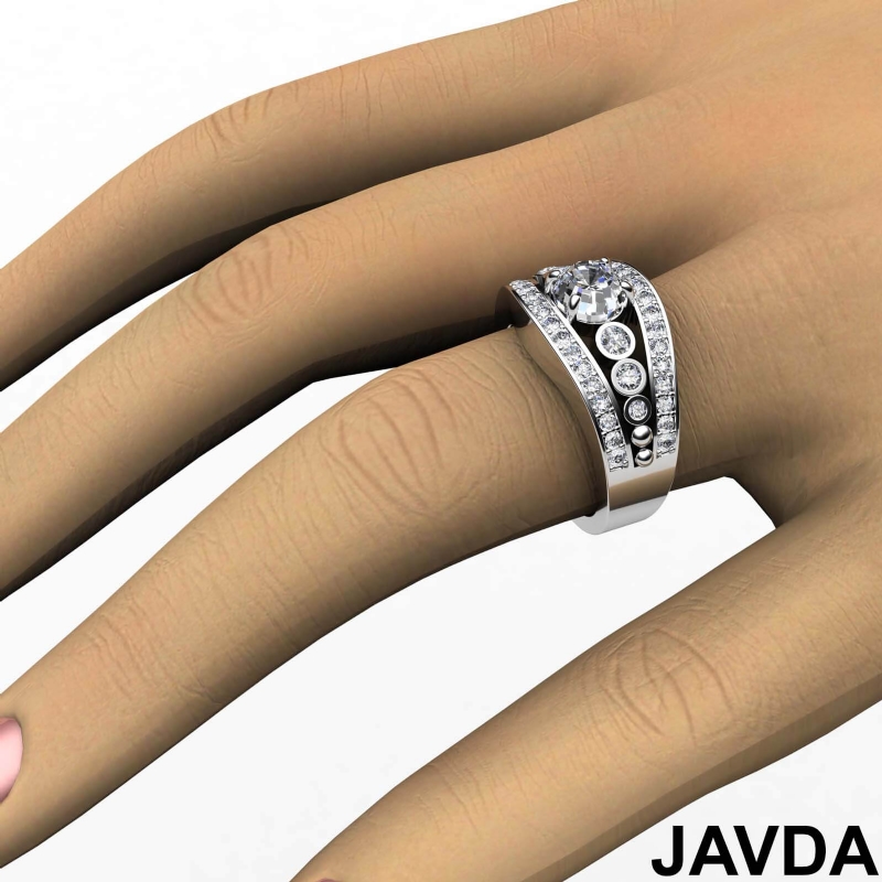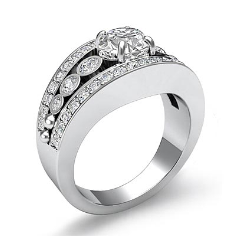 Bezel Setting Sidestone style Engagement Ring, center is Round shape Diamond Report by GIA, I Color & VS2 clarity, Made in 14k White Gold (1.46 ct. tw.)