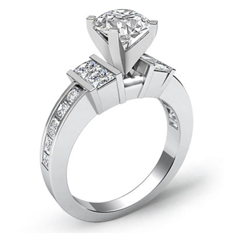 1Ct Diamond Engagement Semi Mount Ring Princess Channel Setting 14k White Gold.