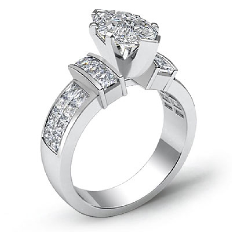 Classic Side-Stone Invisible style Engagement Ring, center is Marquise shape Diamond Report by GIA, F Color & VVS2 clarity, Made in 14k White Gold (2.03 ct. tw.)