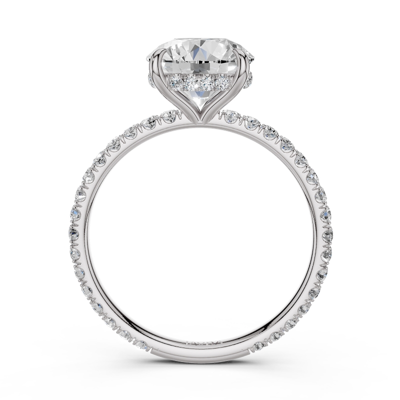 U Pave Hidden Halo Semi Mount Diamond Engagement Ring 14k White Gold 0.48Ct - javda.com