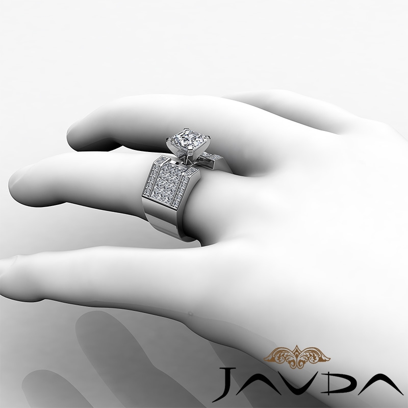 2.62Ct Princess Invisible Diamond Engagement Ring 14k White Gold Semi Mount.
