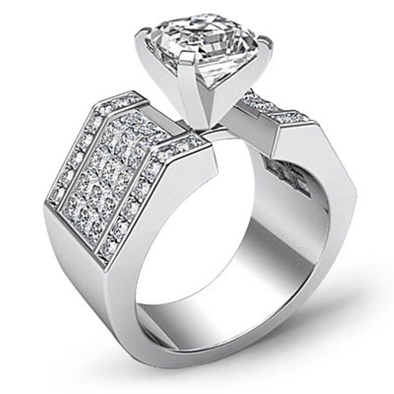 asscher diamond engagement ring report by igi, d color & vs1 clarity, 14k white gold (5.13 ct. tw.)