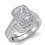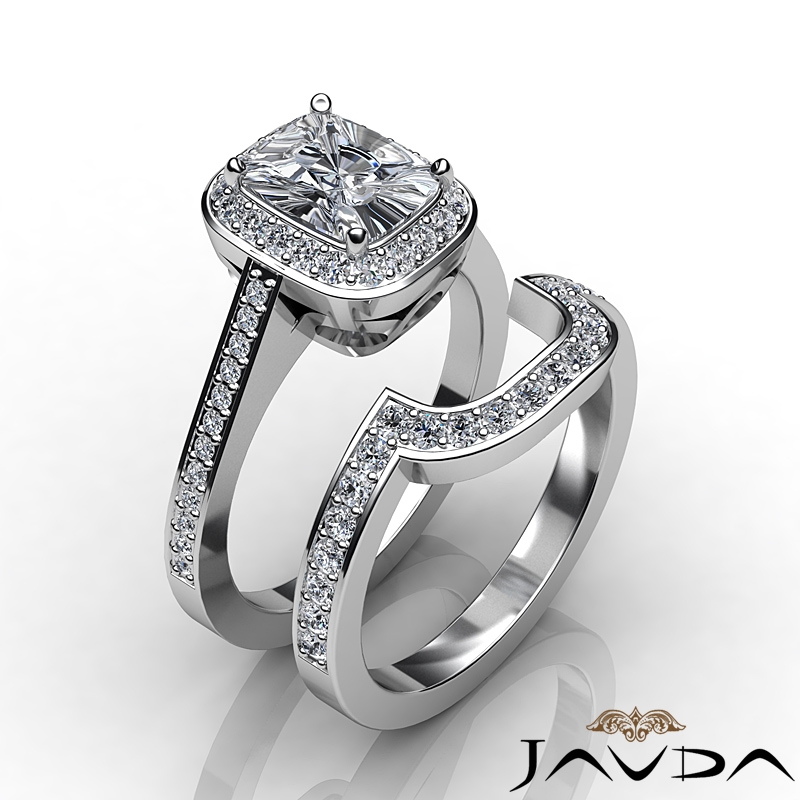 Diamond Engagement Halo Ring Cushion Bridal Sets 14k White Gold SemiMount 0.86Ct.