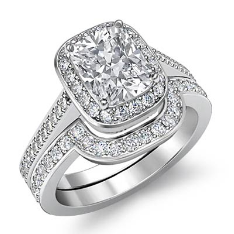 Filigree Halo Bridal Set style Engagement Ring, center is Cushion shape Diamond Report by IGI, E Color & VS1 clarity, Made in 14k White Gold (3.38 ct. tw.)