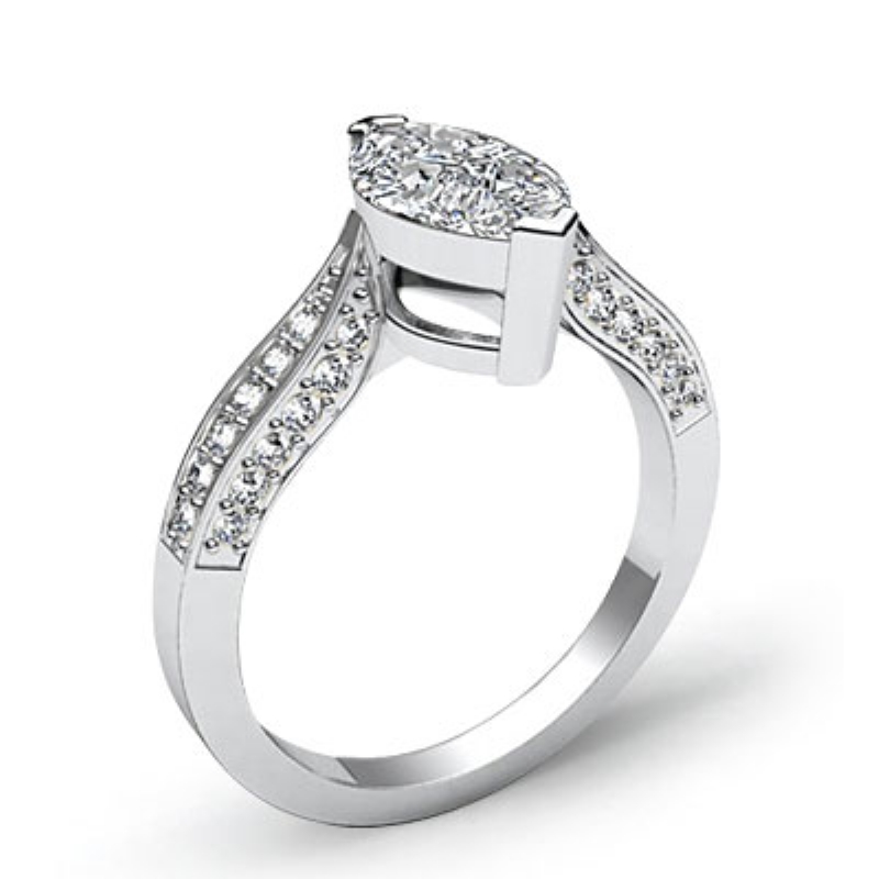 style Engagement Ring, center is Marquise shape Diamond Report by IGI, F Color & VS1 clarity, Made in 14k White Gold (3.21 ct. tw.)