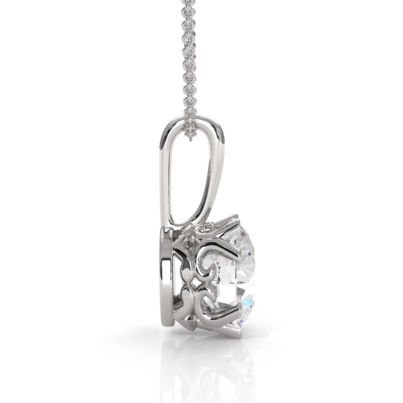 Cushion Cut Diamond Filigree Semi Mount Bail Solitaire Pendant in 14k White Gold.