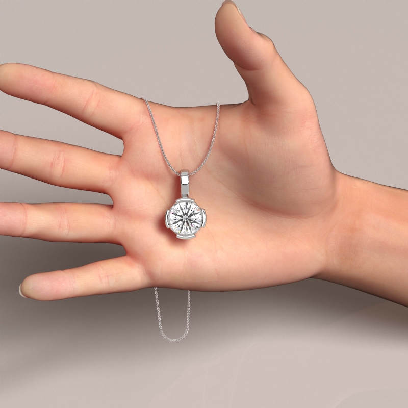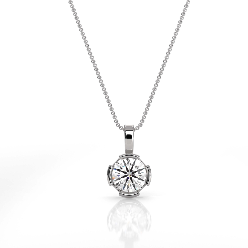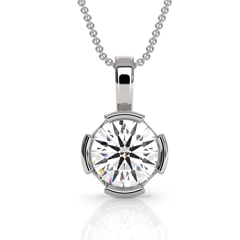 Bezel Set Round Cut Solitaire Semi Mount Bail Pendant in 14k White Gold.
