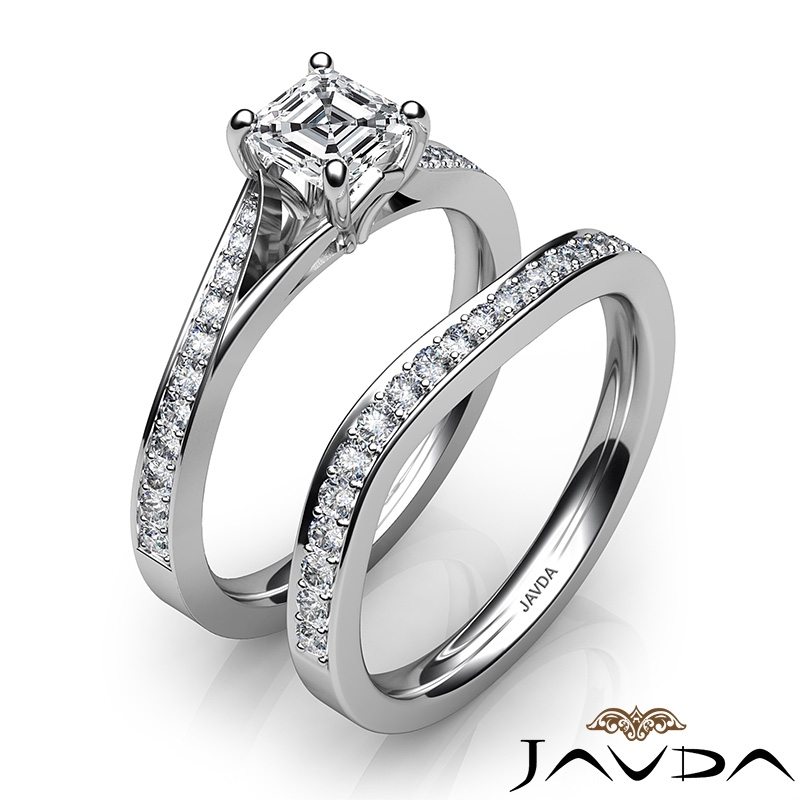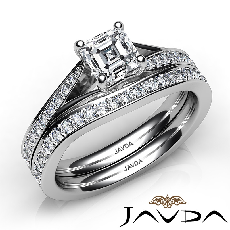 Split Shank Pave Bridal Set style Engagement Ring, center is Asscher shape Diamond Report by IGI, D Color & VS1 clarity, Made in 14k White Gold (2.39 ct. tw.)