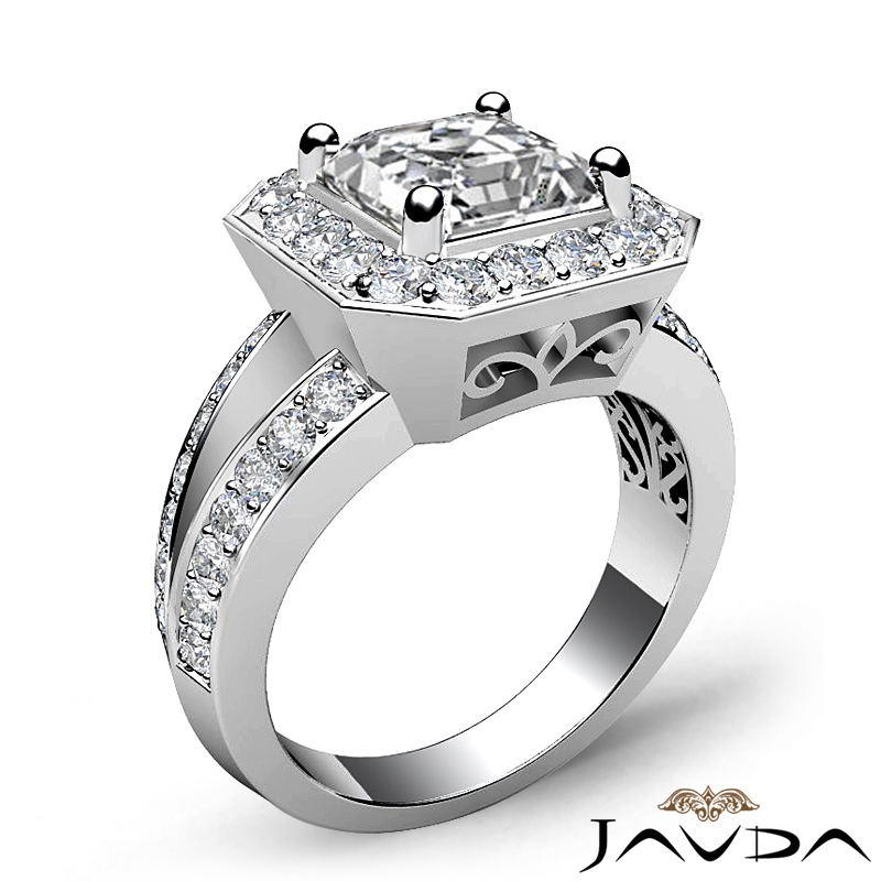 Diamond Engagement Asscher Semi Mount Ring 14k White Gold Halo Pave Setting 0.63Ct - javda.com