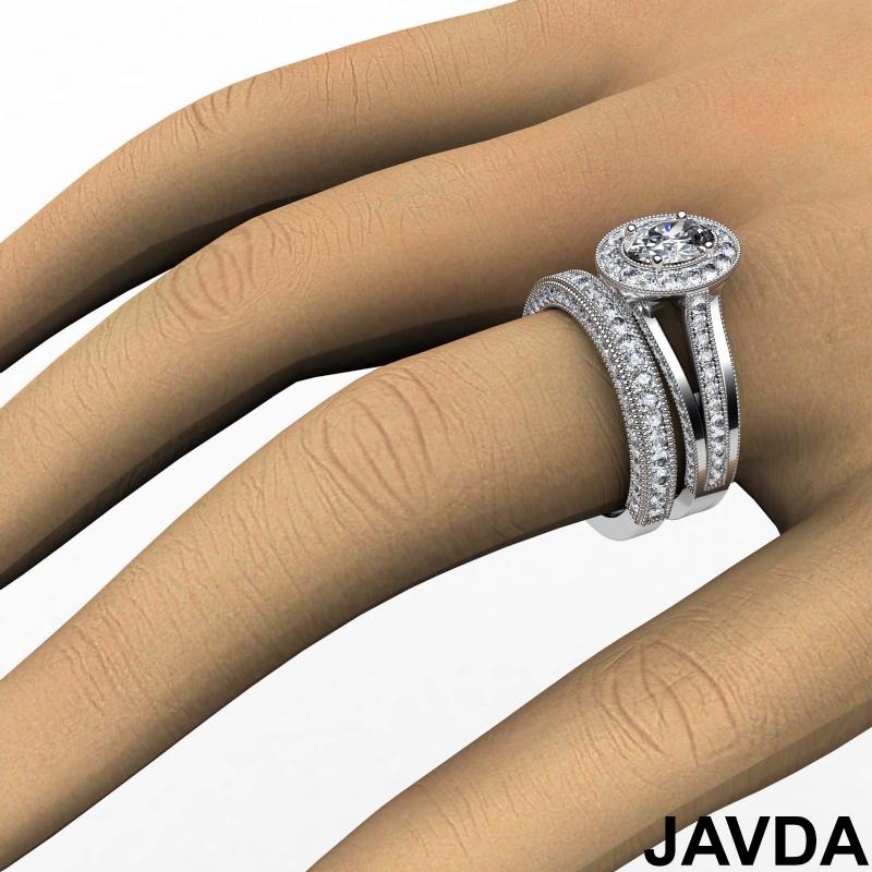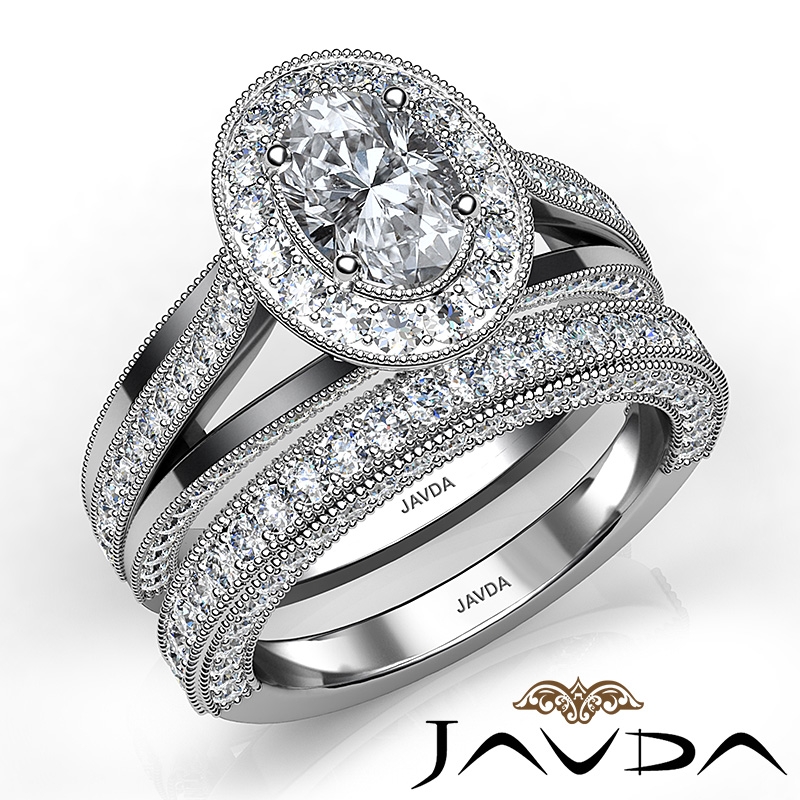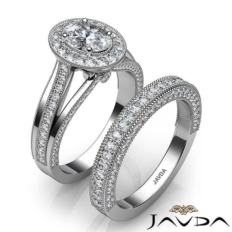 Pave Diamond Engagement Ring Bridal Sets 14k White Gold Oval Semi Mount 1.7Ct.