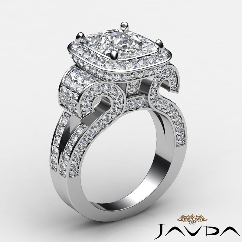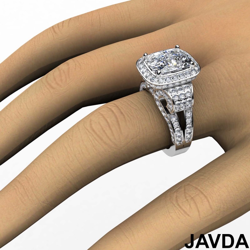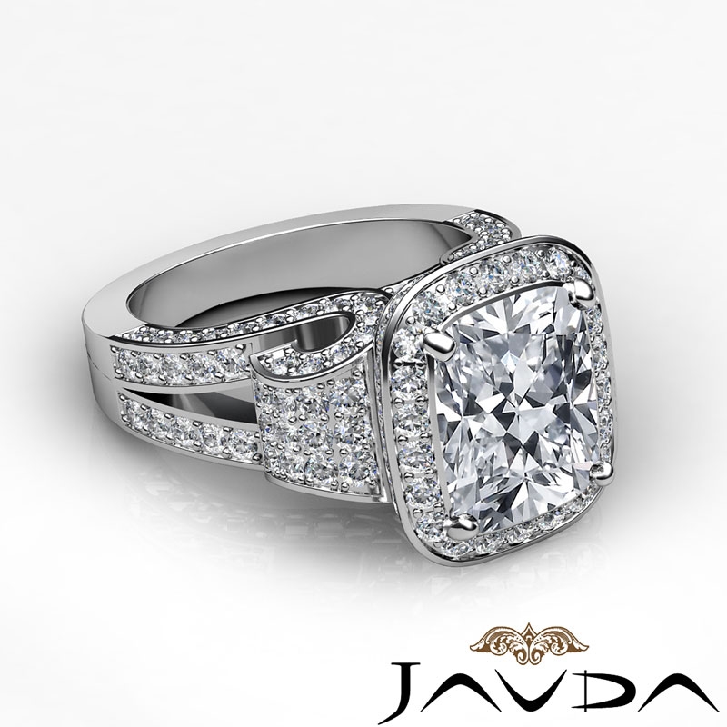 Cushion Diamond Setting Antique & Vintage Engagement Semi Mount Ring 14k White Gold 2.65Ct - javda.com