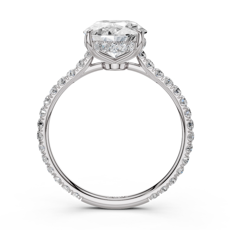 Hidden Halo U Pave Round Semi Mount Diamond Engagement Ring 14k White Gold 0.47Ct.