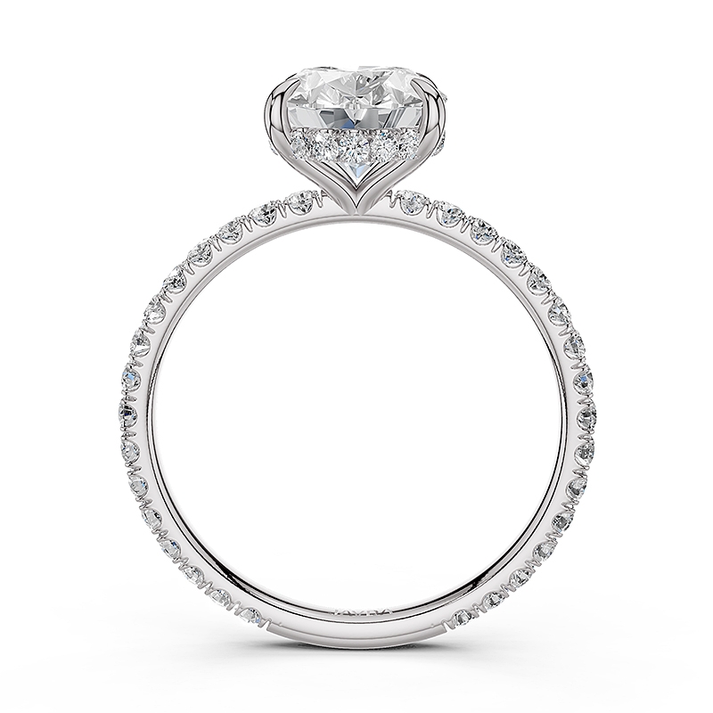 U Pave Hidden Halo Semi Mount Diamond Engagement Ring 14k White Gold 0.48Ct.