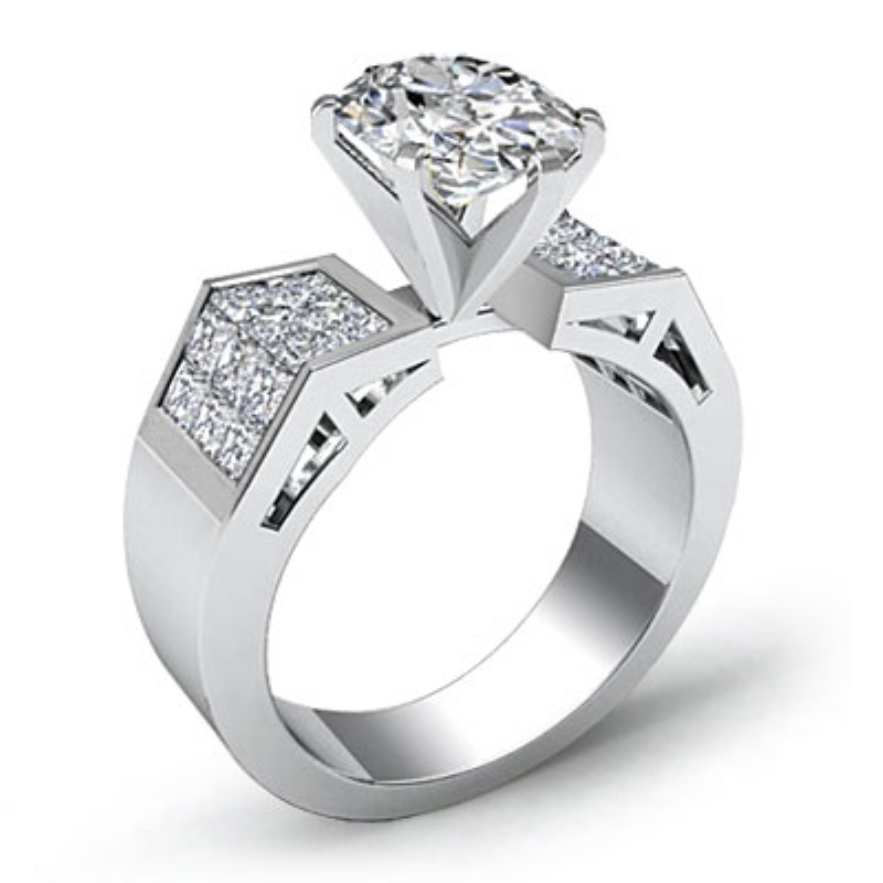 0.84Ct Princess Diamond Engagement Women Ring Invisible Semi Mount 14k White Gold.