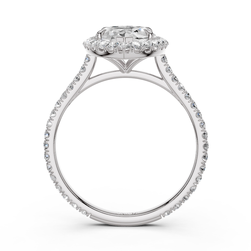 French U Pave Halo Semi Mount Diamond Engagement Ring 14k White Gold 0.54Ct.
