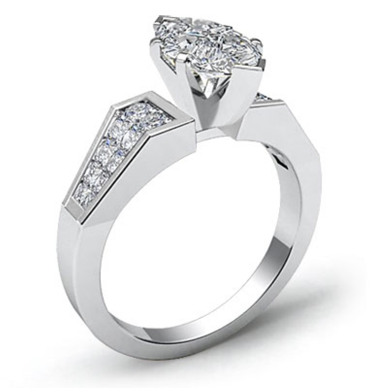 style Engagement Ring, center is Marquise shape Diamond Report by IGI, E Color & VS1 clarity, Made in 14k White Gold (2.2 ct. tw.)