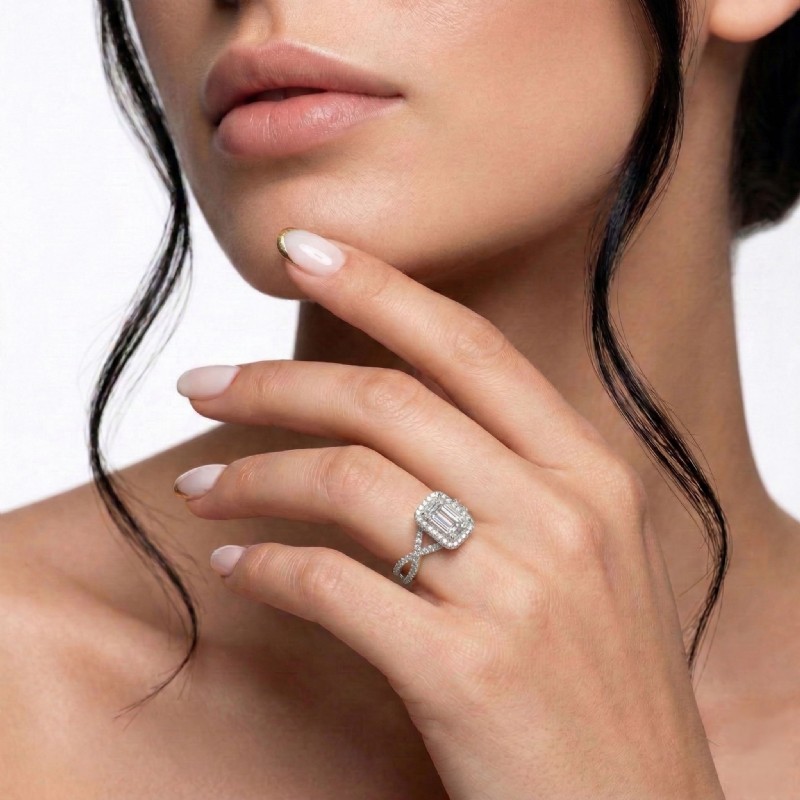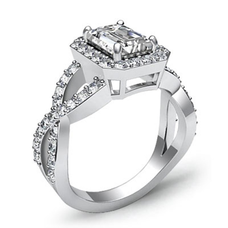 style Engagement Ring, center is Emerald shape Diamond Report by IGI, D Color & VS1 clarity, Made in 14k White Gold (1.67 ct. tw.)