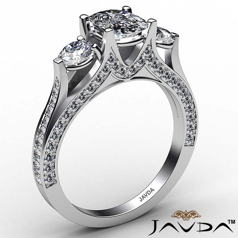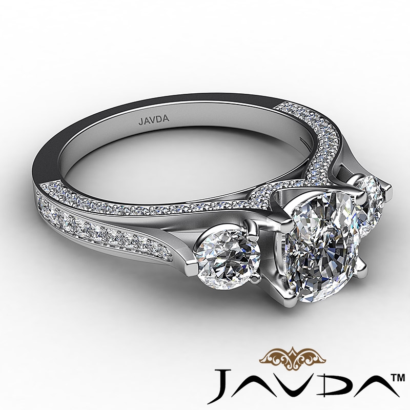 Three Stone Bridge Accent style Engagement Ring, center is Cushion shape Diamond Report by IGI, D Color & VS1 clarity, Made in 14k White Gold (2.31 ct. tw.)