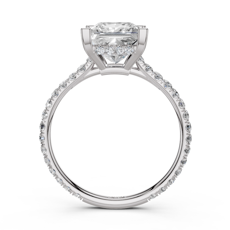 Hidden Halo U Pave Round Semi Mount Diamond Engagement Ring 14k White Gold 0.47Ct.
