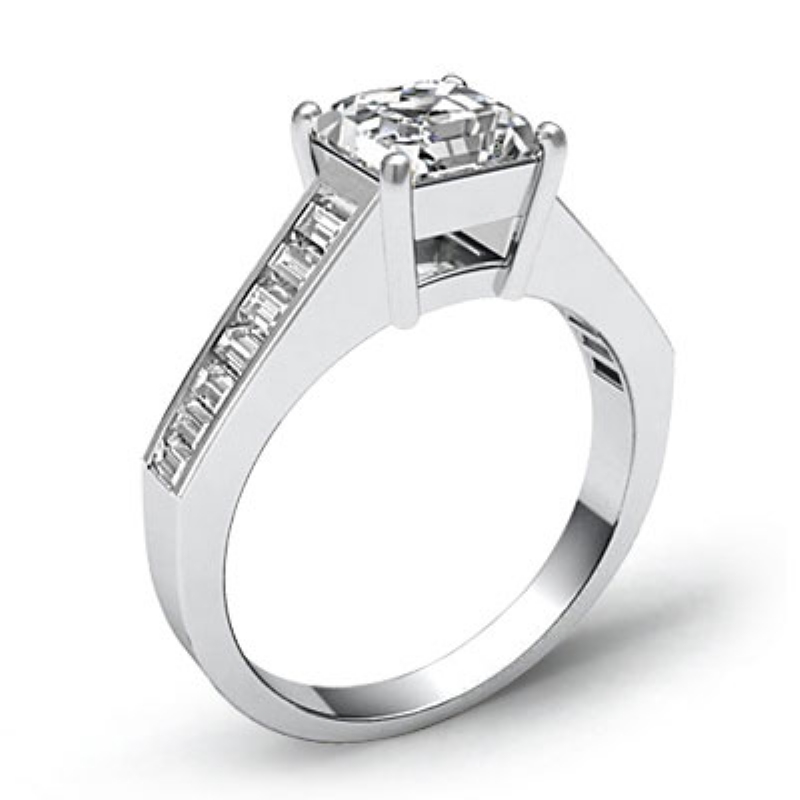 0.85Ct Baguette Channel Diamond Engagement Ring Setting 14k White Gold.