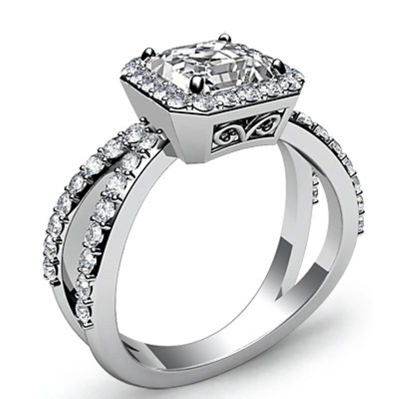 style Engagement Ring, center is Asscher shape Diamond Report by IGI, D Color & VS1 clarity, Made in 14k White Gold (1.83 ct. tw.)