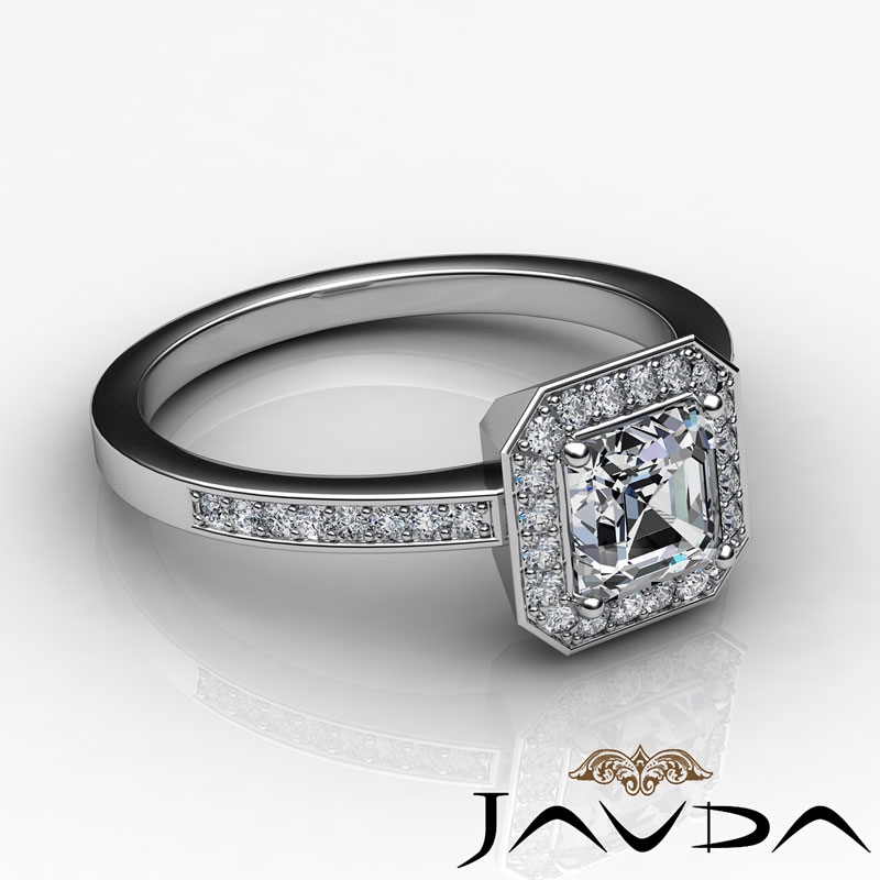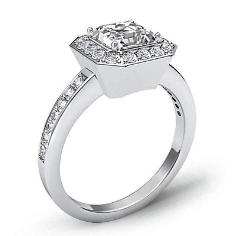 4 Prong Halo With Sidestone style Engagement Ring, center is Asscher shape Diamond Report by IGI, D Color & VS1 clarity, Made in 14k White Gold (2.08 ct. tw.)