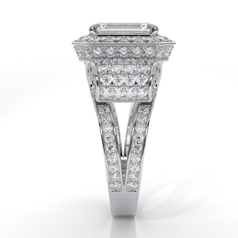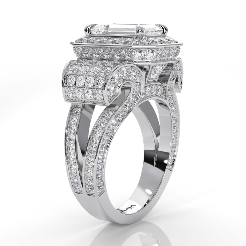 style Engagement Ring, center is Emerald shape Diamond Report by IGI, D Color & VS1 clarity, Made in 14k White Gold (6.7 ct. tw.)