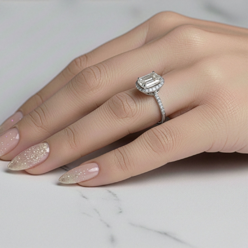 style Engagement Ring, center is Emerald shape Diamond Report by IGI, D Color & VS1 clarity, Made in 14k White Gold (1.58 ct. tw.)