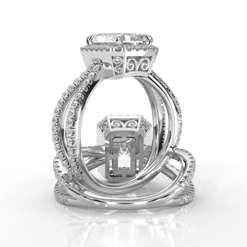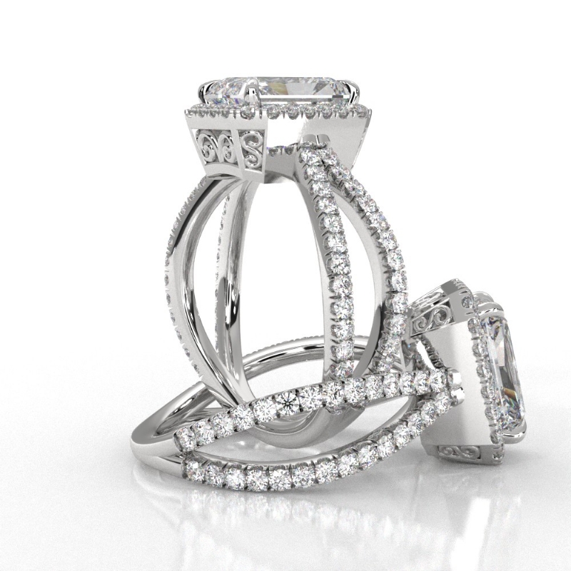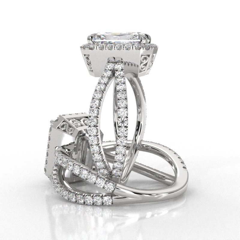 Diamond Engagement SemiMount Ring Split Shank 14k White Gold Halo Setting 0.75Ct.
